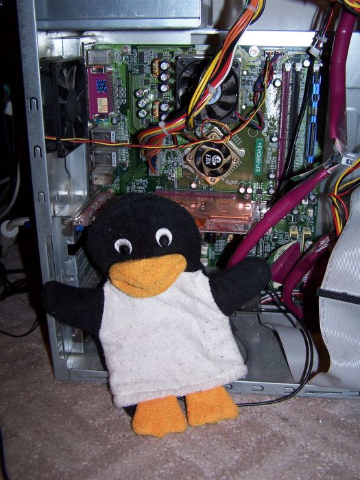 Tohle jsou fotky jednoho už skoro dospělého plyšového tučňáka