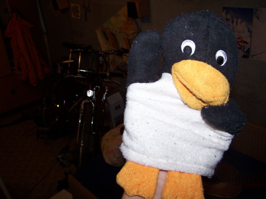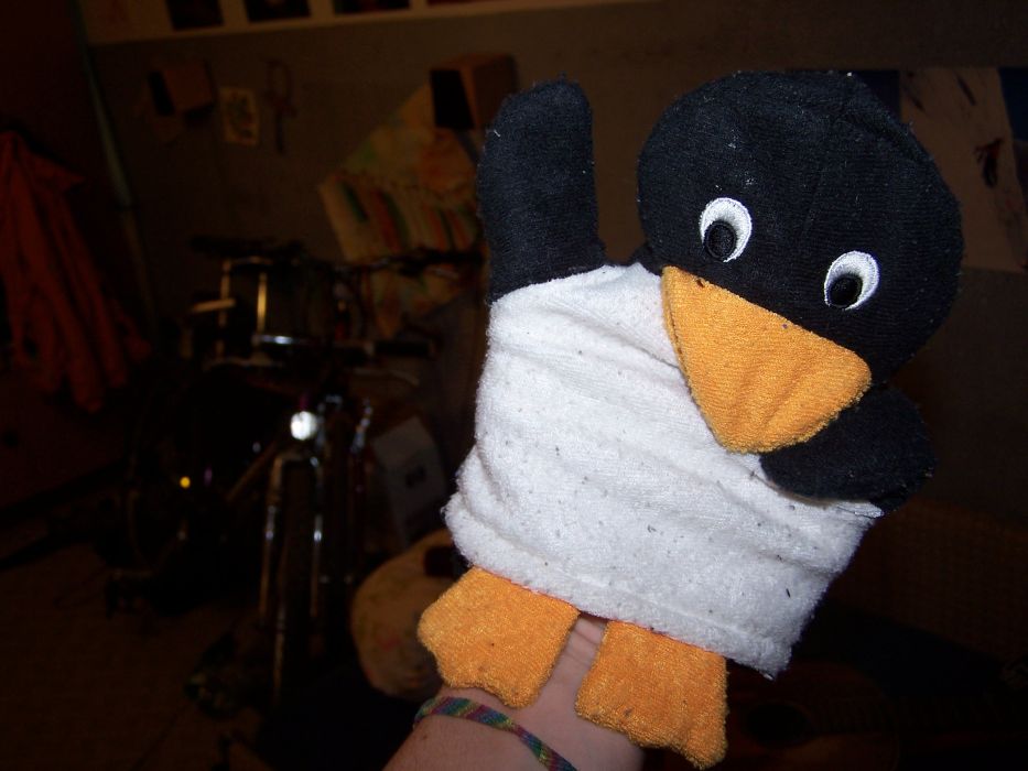 Tohle jsou fotky jednoho už skoro dospělého plyšového tučňáka