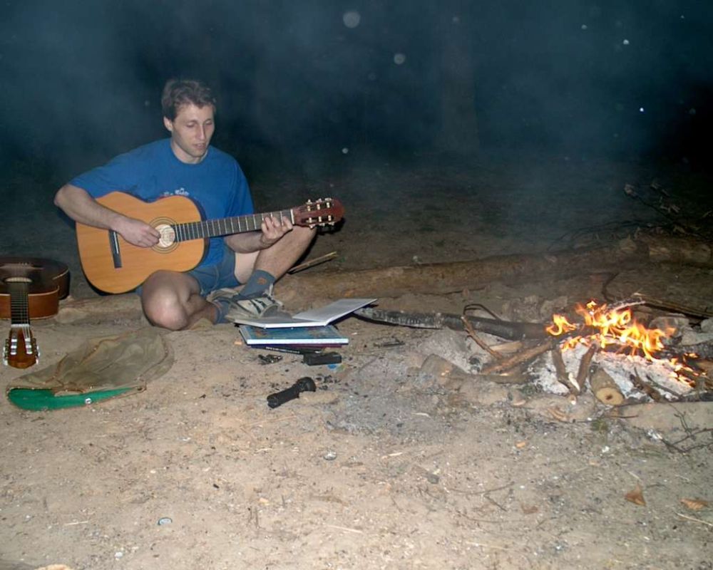 Vyšli sme si s Martinem ohřát buřtík a zahrát na kytary. ž.
