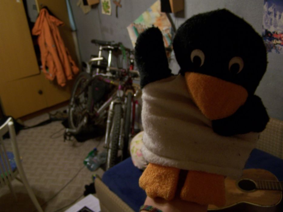 Tohle jsou fotky jednoho už skoro dospělého plyšového tučňáka