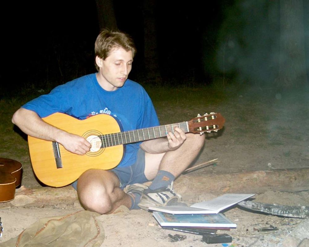 Vyšli sme si s Martinem ohřát buřtík a zahrát na kytary. ž.